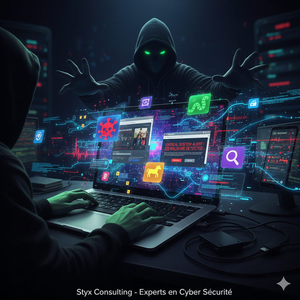 Le terme « malware » est la contraction de l’anglais malicious software, soit logiciel malveillant. Contrairement aux logiciels que vous installez volontairement pour travailler, le malware s’installe à votre insu et agit dans l’ombre pour nuire à votre système ou à vos données.